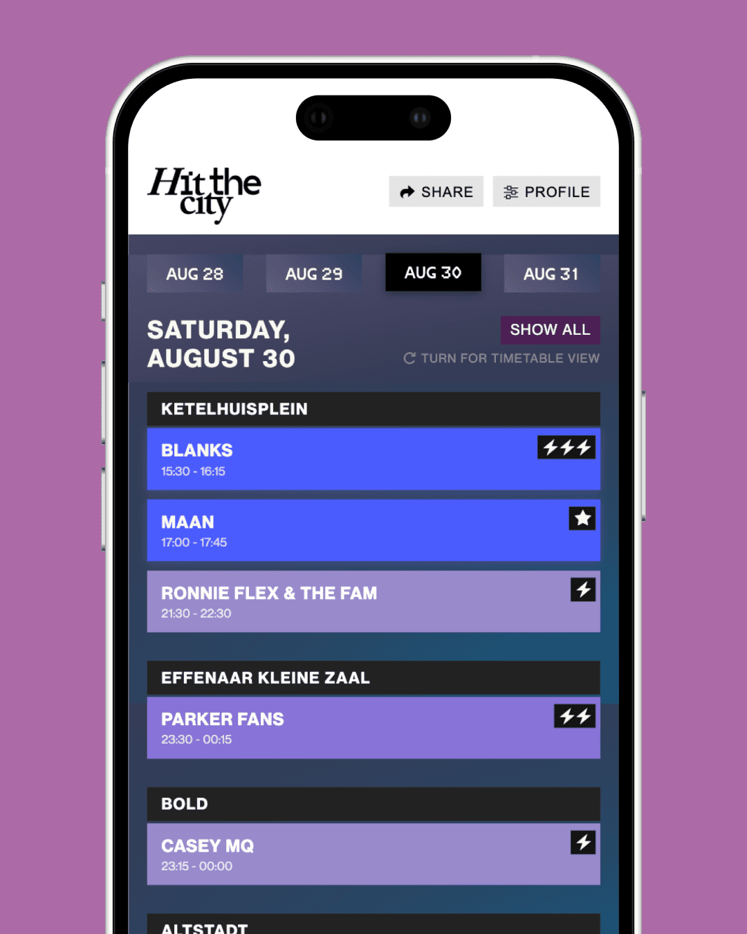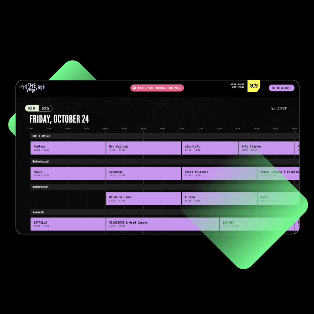 Your line-up is the top driver of attendance, yet most organizers give their timetable only limited attention. Visitors either end up with an unattractive, hard-to-use timetable or get pushed into an external app.
